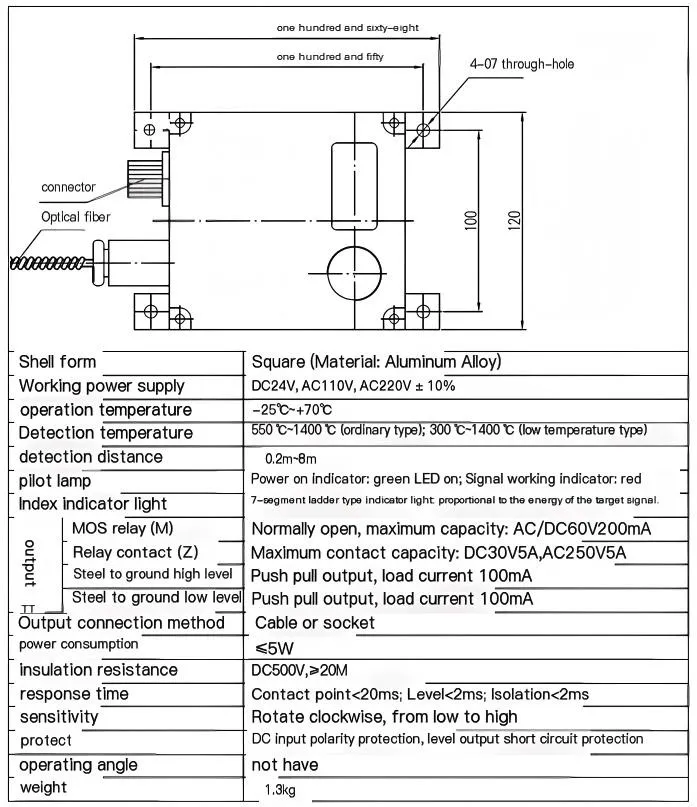Optical fiber type hot metal detector is a split structure, which transmits optical signals through optical fibers. It can replace foreign detectors of the same type and can be used for metal object positioning, size control, tracking and other purposes in metallurgical production.