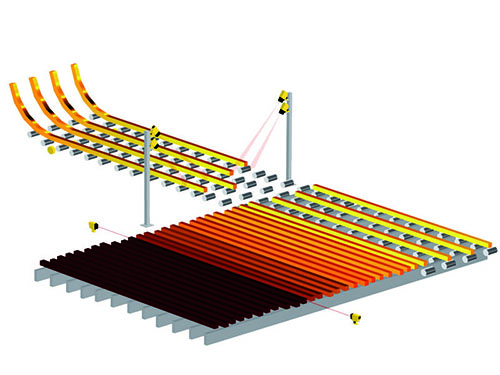 为了给热轧线提供正确的坯料,测量连铸线生产的板坯、方坯或钢锭的外形尺寸很重要。常州百钢研发了能在连铸线恶劣环境下直接对高温工件作非接触式高精度测量的特殊激光测量传感器。传感器的典型应用包括在 喷码标号机或去毛刺机前等不同位置对工件进行检测。