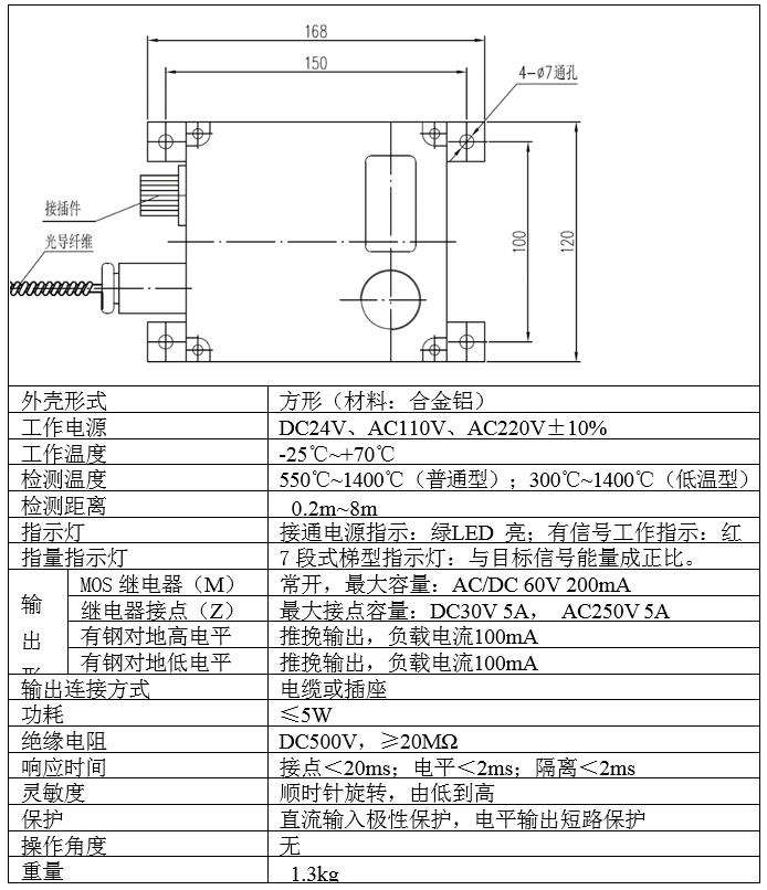 1、BCF4型热金属检测器可在较高环境温度下检测, 光电检测头及光导纤维部分可在-40℃~+200℃的环境中正常工作。