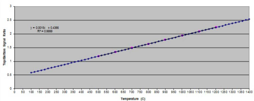 比色测温仪又称双色测温仪。它是利用邻近通道两个波段红外辐射能量的比值来决定温度的大小。比值与温度的关系是线性的,这是由探测器的性能决定的。