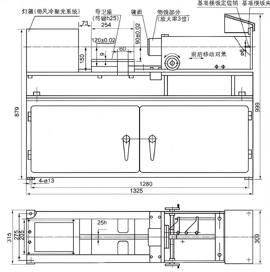 Thiết bị chiếu điều chỉnh hướng dẫn được sử dụng rộng rãi trong ngành luyện kim, chủ yếu để điều chỉnh hướng dẫn của dây chuyền sản xuất dây tốc độ cao. Thiết bị chiếu chiếu hình ảnh của con lăn dẫn hướng lên mẫu tham chiếu. Bằng cách điều chỉnh con lăn dẫn hướng, hình chiếu của con lăn dẫn hướng trùng với đường trên mẫu tham chiếu, do đó đóng vai trò điều chỉnh chính xác hướng dẫn.